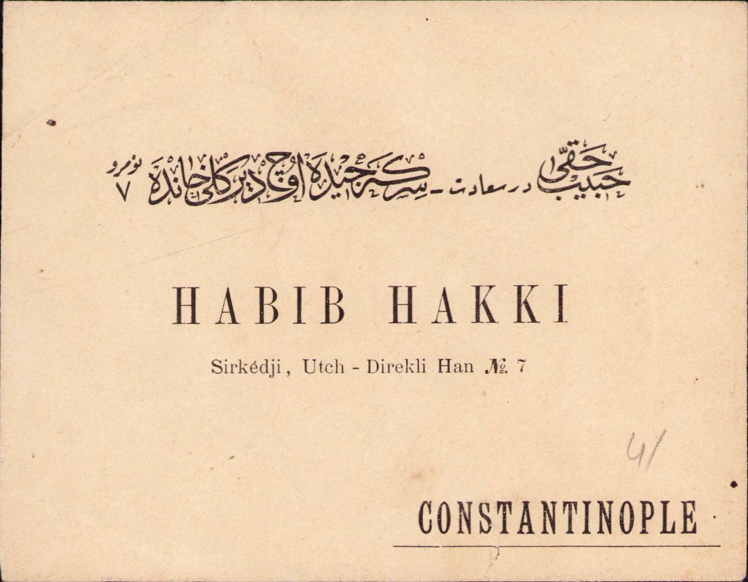 Osmanlıca Fransızca Habib Hakkı, Dersaadet - Constantinople antetli zarf