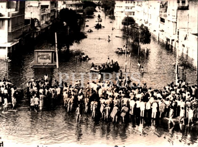 Sele maruz kalan şehirde botlarla kurtarılan insanlar, 8x11 cm