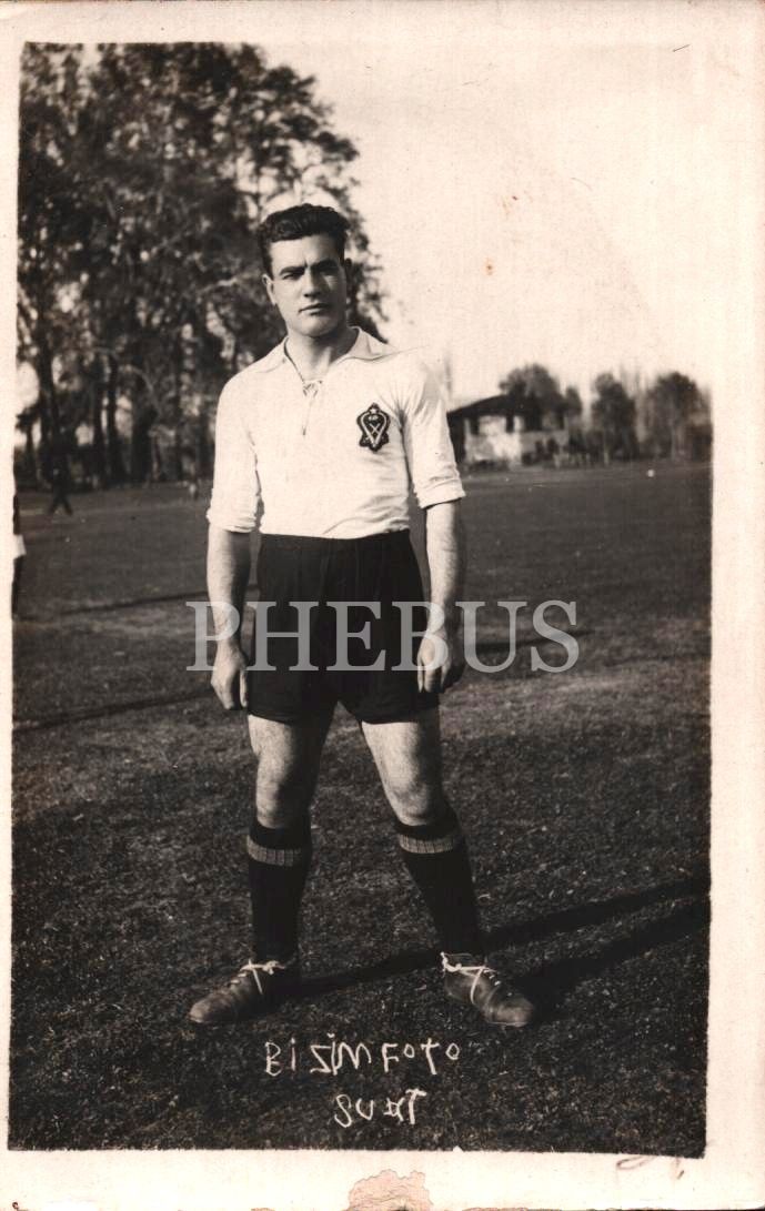 Bir futbolcunun, "Şerefli galibiyetleri hatırla 6.12.1930, Ziya" yazılı fotoğrafı, Bizim Foto Suat, 9x14 cm