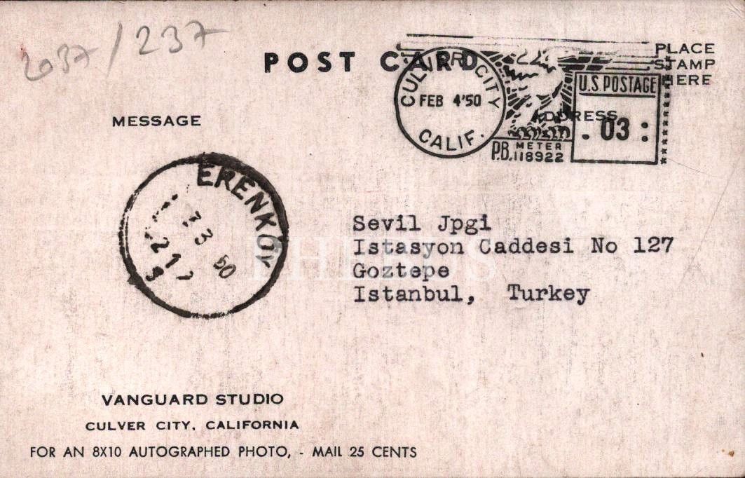 Fotoğraflardan biri imzalı ve Erenköy/İstanbul adresine gönderilmiştir.