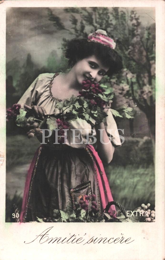 Elle renklendirilmiş, üzerinde Fransızca "samimi dostluk" yazılı kartpostal