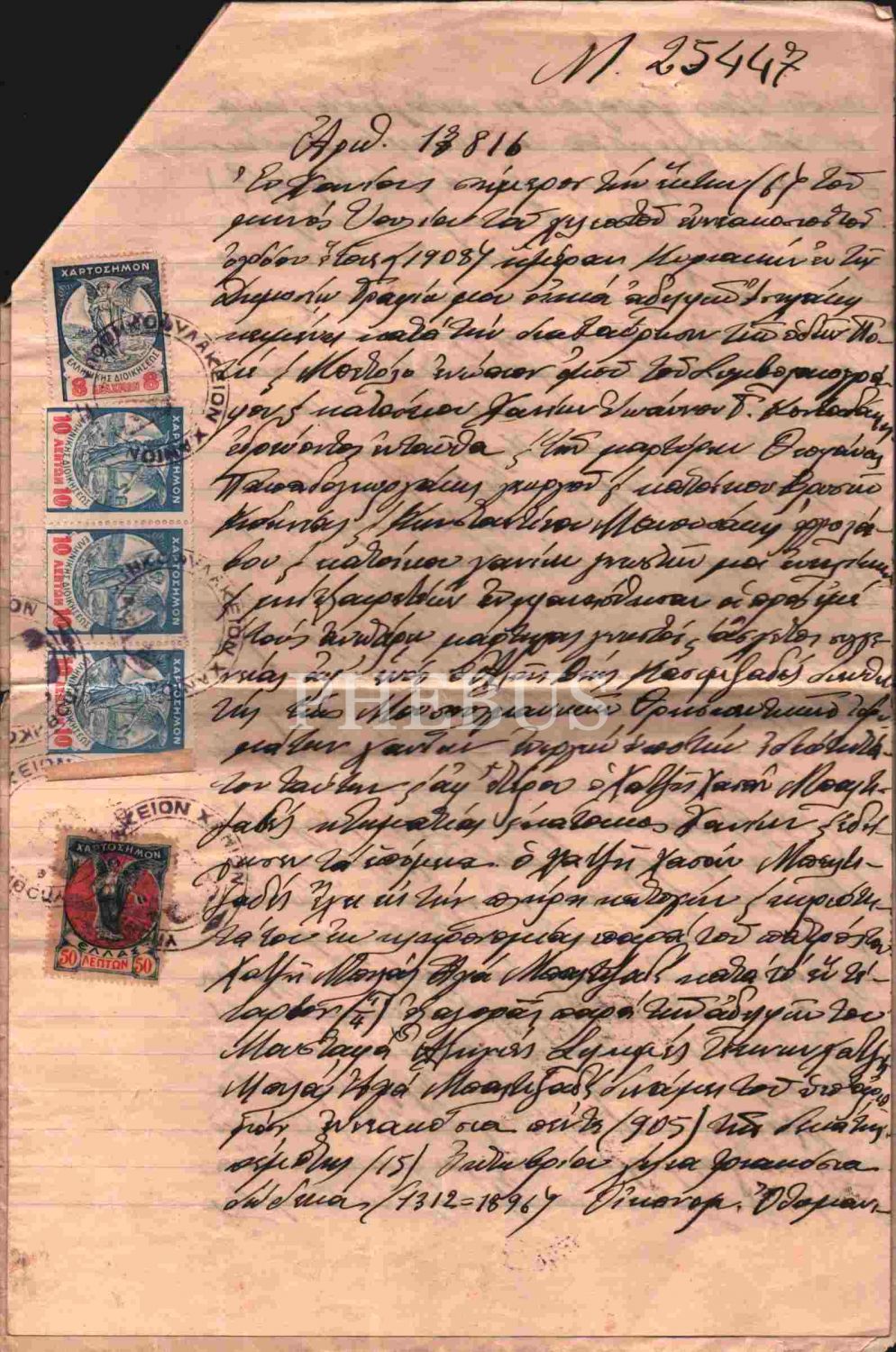 18 ve 7 sayfalık sayfalık pullu ve damgalı Rumca evraklar, 20x30 cm