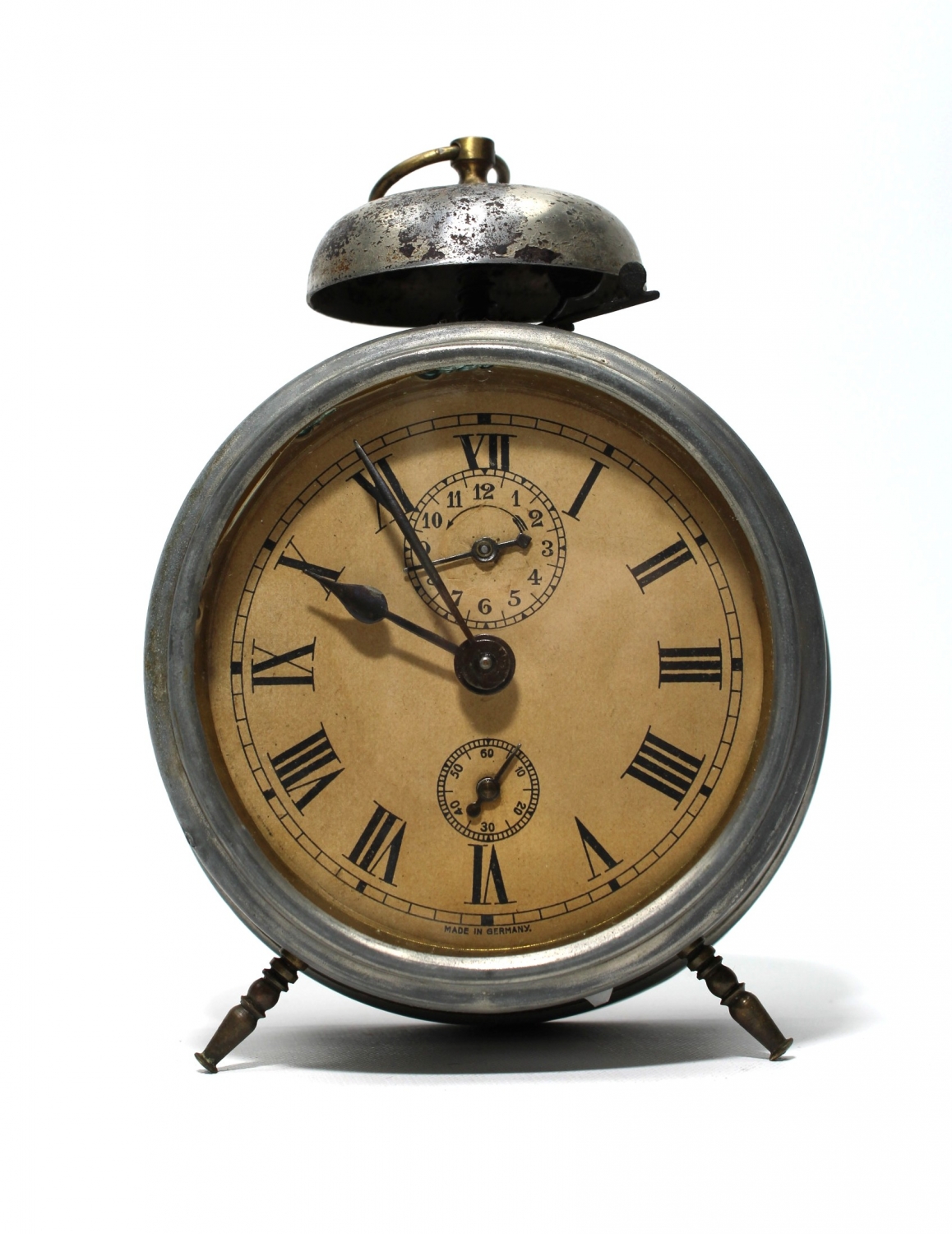 Eski dönem kurmalı masa saati, Alman malı, 15x10x8 cm.