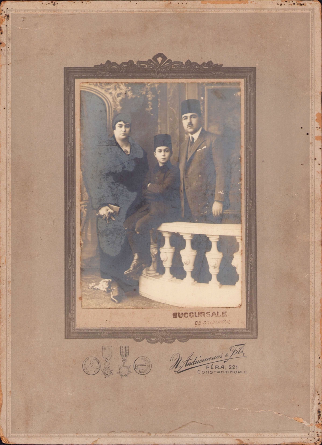Osmanlı fesli tip ve ailesi kabin foto, Photo N. Andriomenos & Fils, Pera, 12x15 cm.