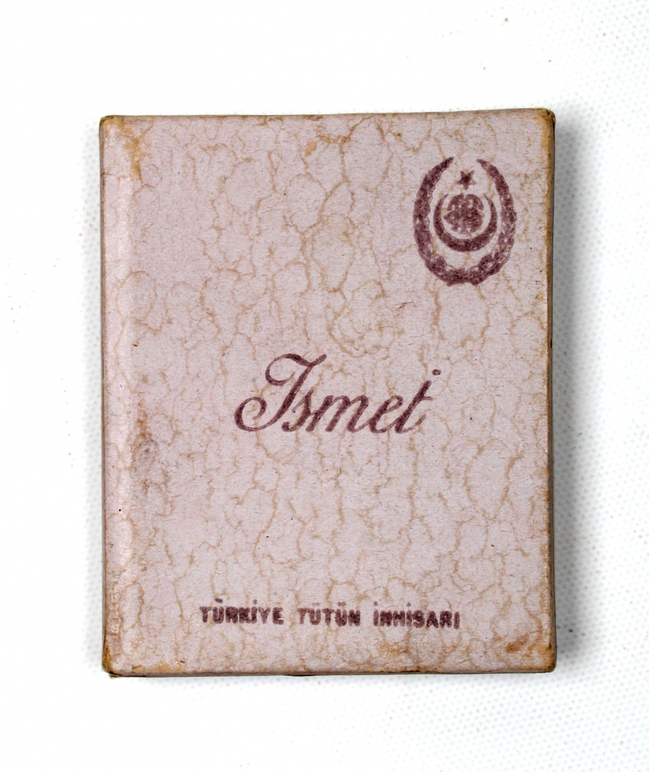 Türkiye Tütün İnhisarı tarafından özel yapılmış İsmet İnönü sigarası, açılmamış, 6x8x1 cm.