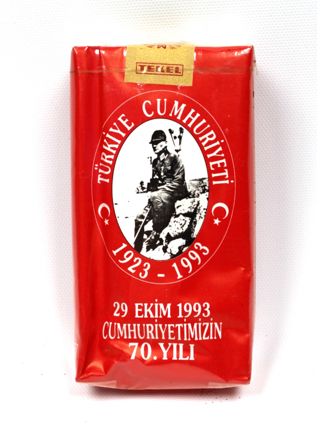 Cumhuriyetin 70. yılına özel hazırlanmış, Atatürk görselli açılmamış sigara, 5x10x2 cm.