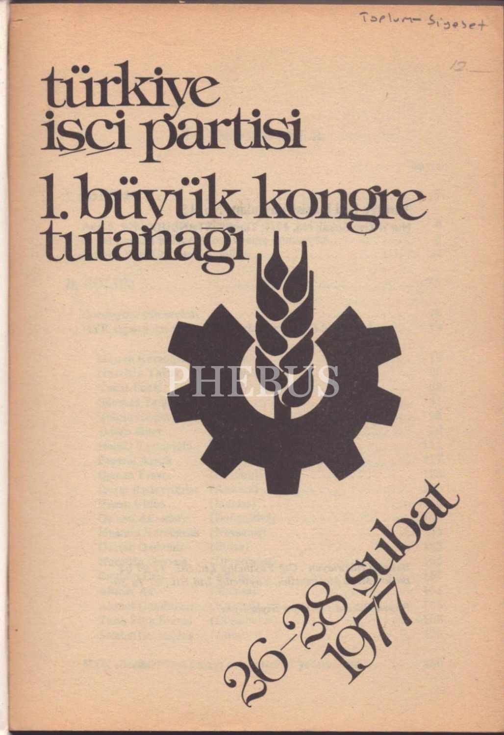 TÜRKİYE İŞÇİ PARTİSİ 1. BÜYÜK KONGRE TUTANAĞI (26-28 Şubat 1977), Türkiye İşçi Partisi Yayınları No: 15, 254 sayfa, 13x20 cm