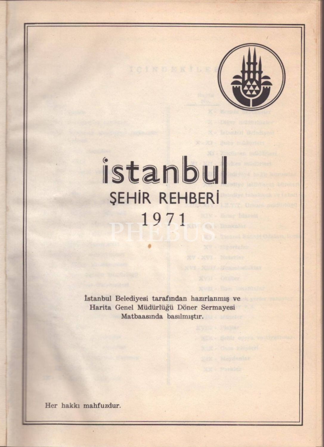 İSTANBUL ŞEHİR REHBERİ 1971, İstanbul Belediyesi, 197 sayfa + harita ekleri, 17x24 cm