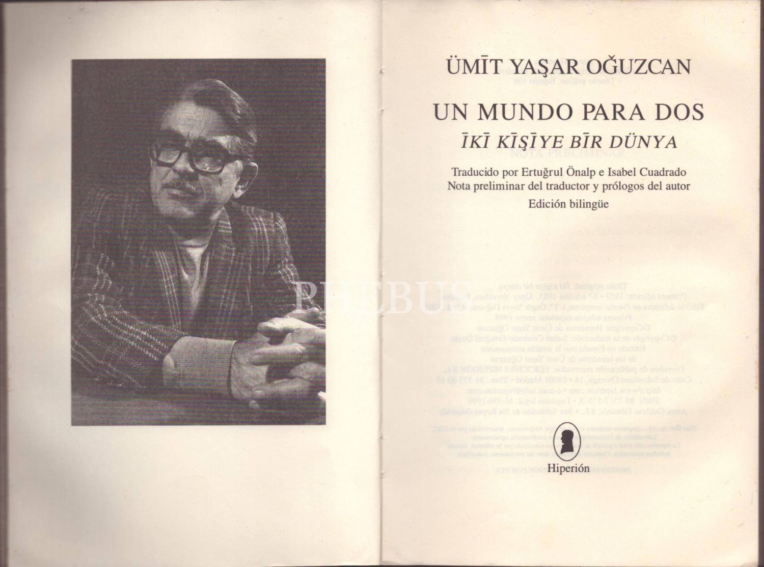 UN MUNDO PARA DOS- İKİ KİŞİYE BİR DÜNYA, Ümit Yaşar Oğuzcan, Hiperion, 1999, 164 sayfa, 14x20 cm