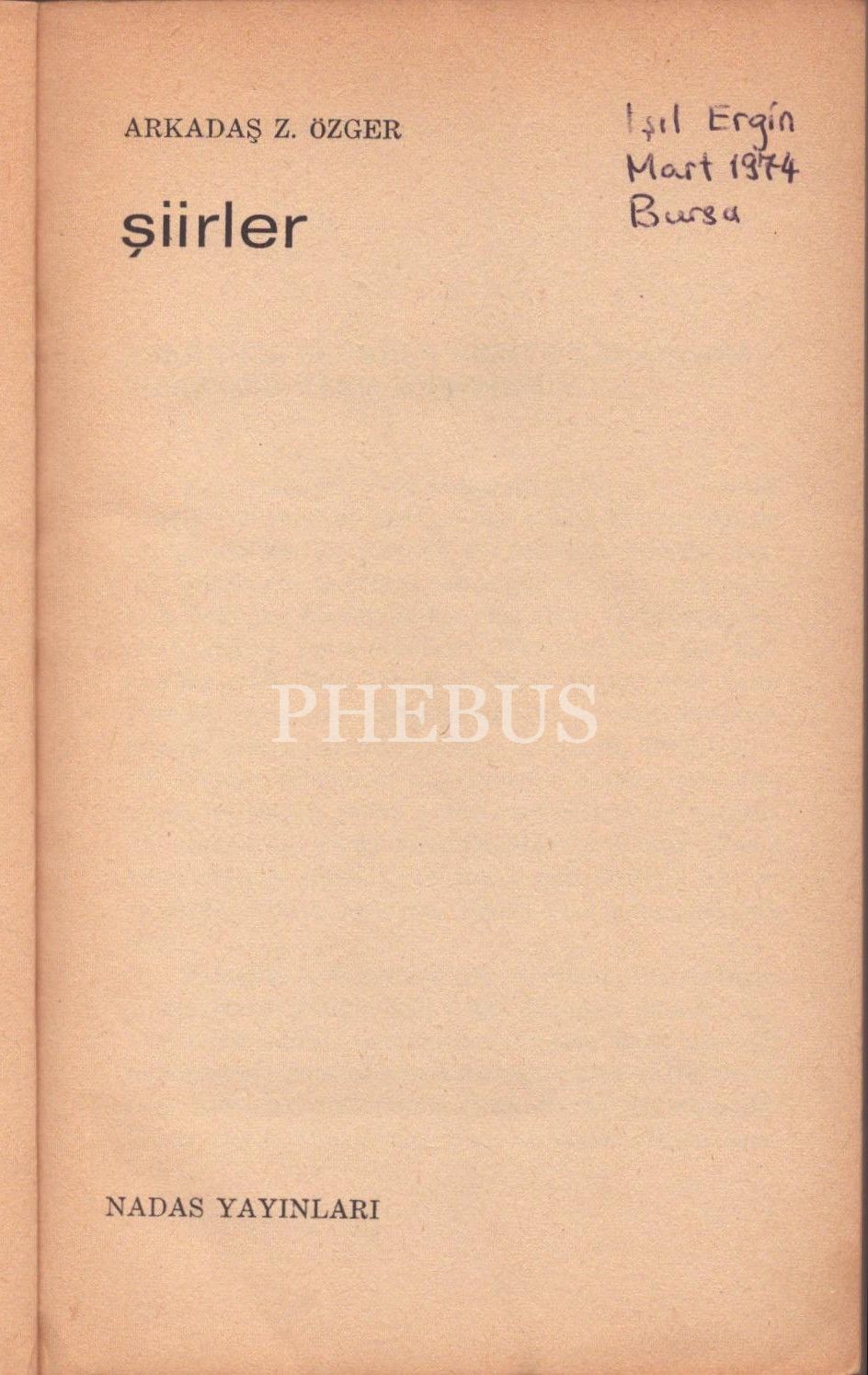 ŞİİRLER, Arkadaş Z. Özger, Nadas Yayınları, Şubat 1974, 118 sayfa, 12x19 cm