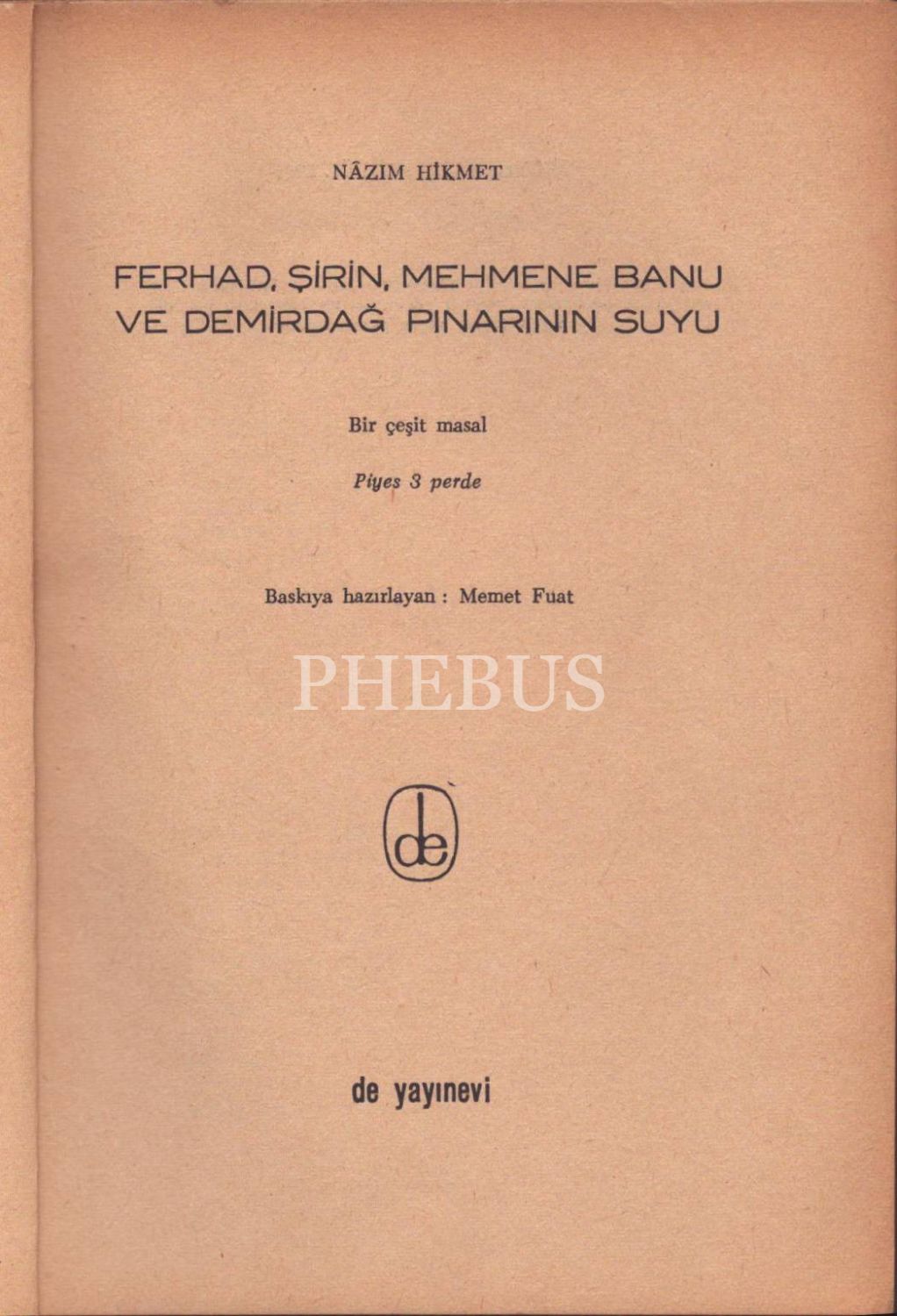 FERHAD İLE ŞİRİN, Nâzım Hikmet, hazırlayan: Memet Fuat, de yayınevi, Eylül 1965, 82 sayfa, 14x20 cm