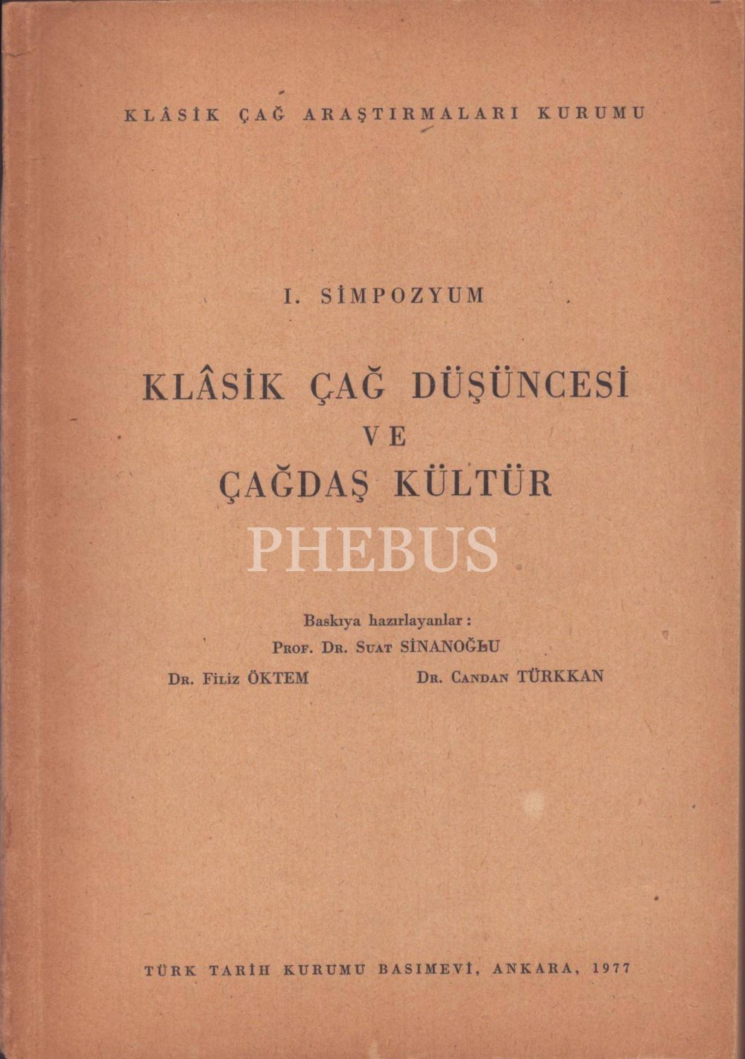 Klasik Çağ Araştırmaları Kurumu I. Simpozyum: KLÂSİK ÇAĞ DÜŞÜNCESİ VE ÇAĞDAŞ KÜLTÜR, Suat Sinanoğlu - Filiz Öktem - Candan Türkkan, Türk Tarih Kurumu Basımevi, Ankara - 1977, 146 sayfa, 17x24 cm