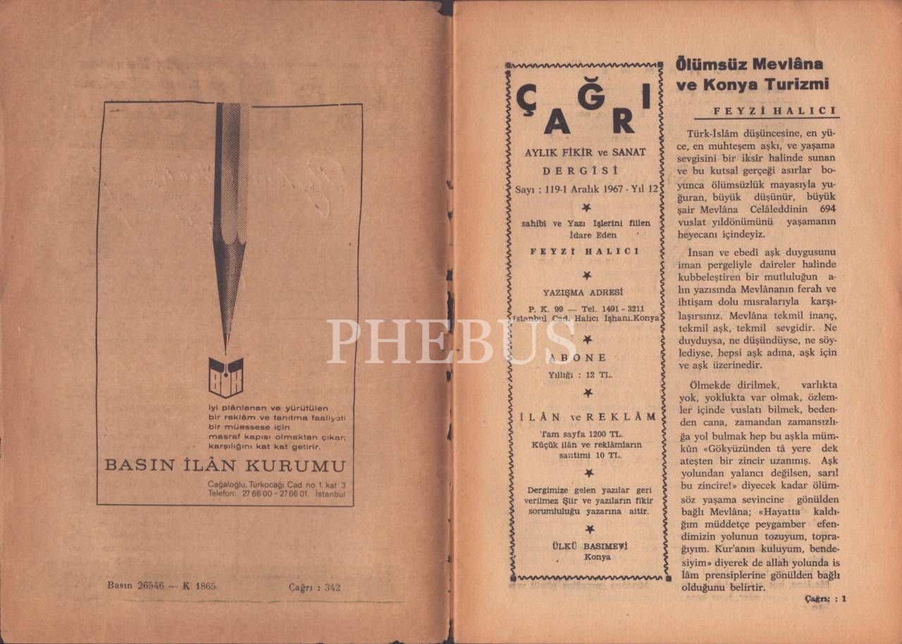 "Aylık Fikir ve Sanat Dergisi" ÇAĞRI´nın 1965-67 yılları arasında yayınlanan 14 sayısı, 17x24 cm