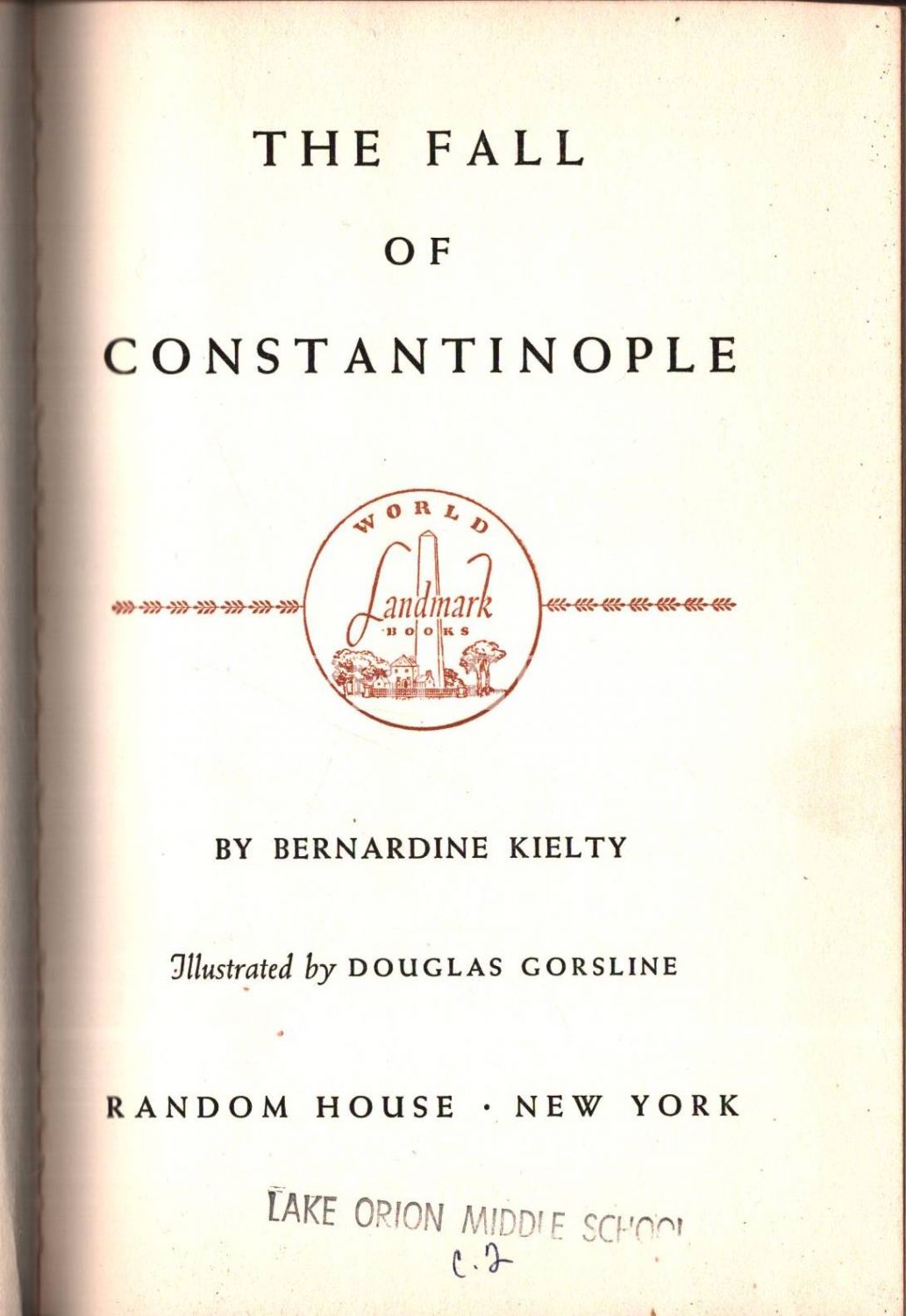 THE FALL OF CONSTANTINOPLE, Bernardine Kielty, Random House, New York - 1957, 184 sayfa, 14x21 cm