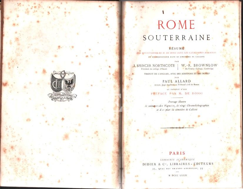 ROME SOUTERRAINE, J. Spencer Northcote - W. R. Brownlow - Paul Allard, İngilizceden Fransızcaya çeviren: M. De Rossi, Didier & Cie Libraires, Paris - 1872, 517 sayfa + görsel ekleri, 16x22 cm