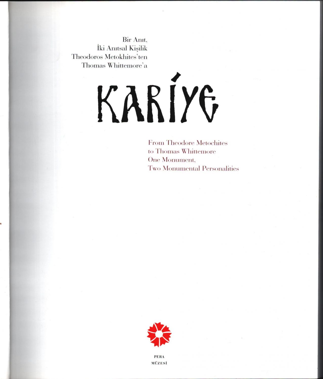 Bir Anıt, İki Anıtsal Kişilik: Theodoros Metokhites´ten Thomas Whittemore´a KARİYE, Pera Müzesi Yayını, İstanbul - Kasım 2010, 212 sayfa, 24x28 cm
