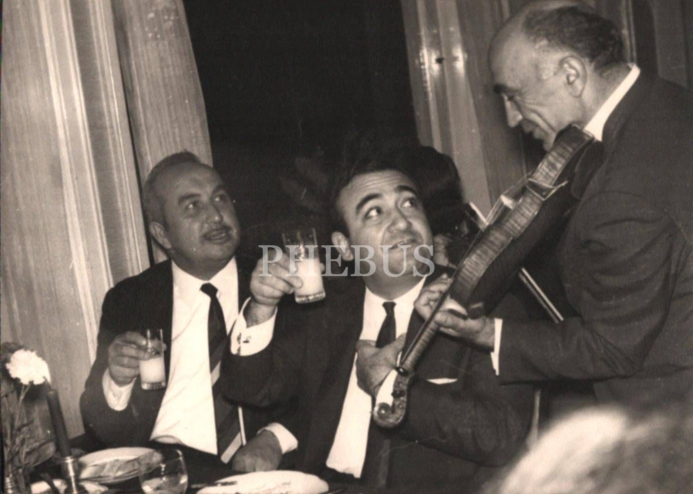 "Hisar Hotel Restaurant Rumelihisarı - İstanbul Hatırası" yazılı fotoğraf kabında kadehlerini neşeyle kemancıya kaldıran beyefendiler, 20x14 cm