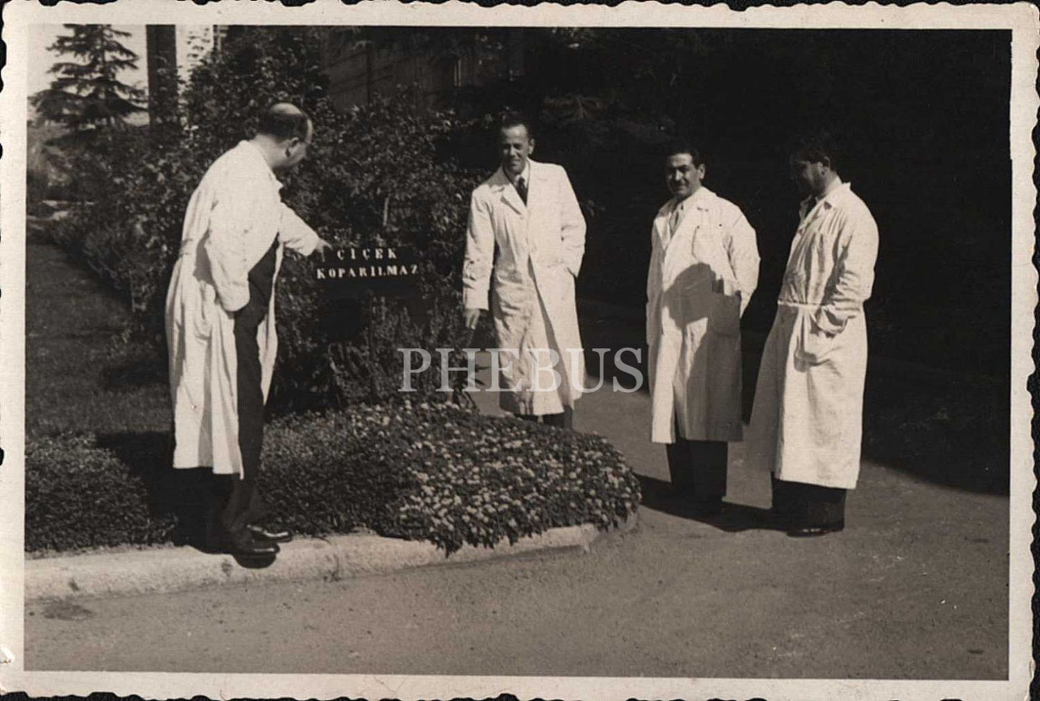 Hastane bahçesinde "Çiçek Koparılmaz" tabelasıyla fotoğraf çektiren doktorlar, 10x7 cm