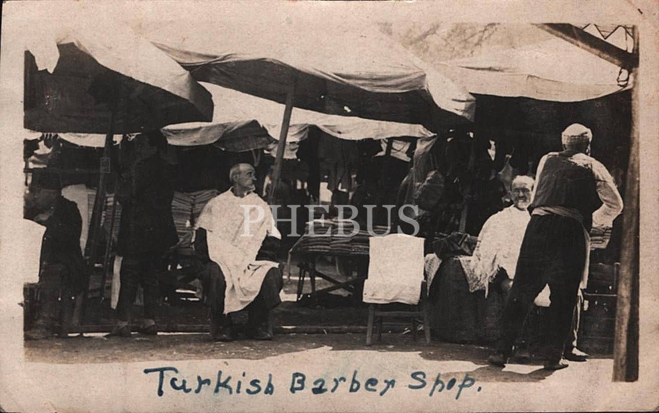 Osmanlı döneminde, çarşı içinde bir sokak berberi, 11x7 cm