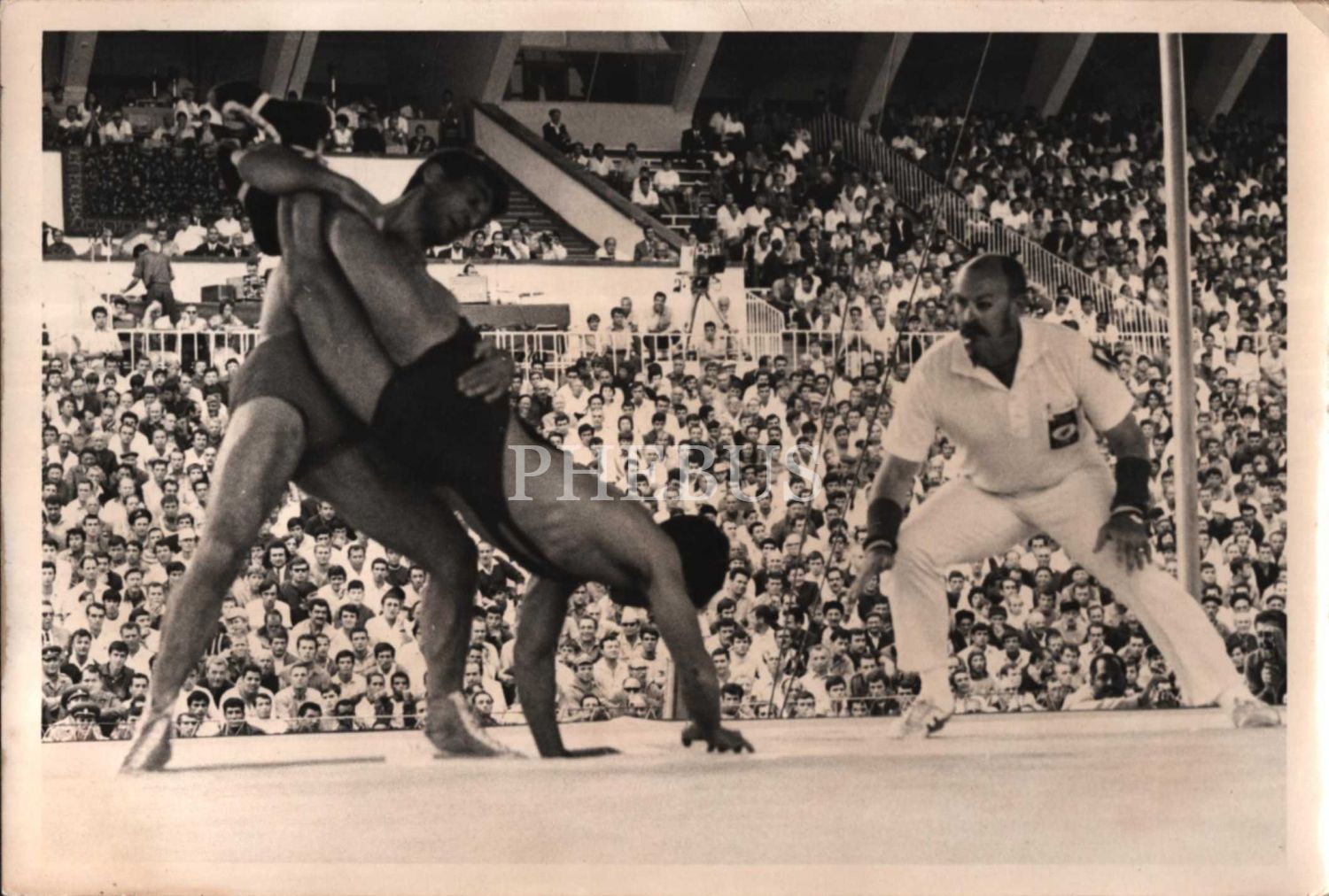 Bir güreş müsabakasından enstantane, arka yüzü açıklamalı ve "Tercüman Arşivi" damgalı, 18x12 cm
