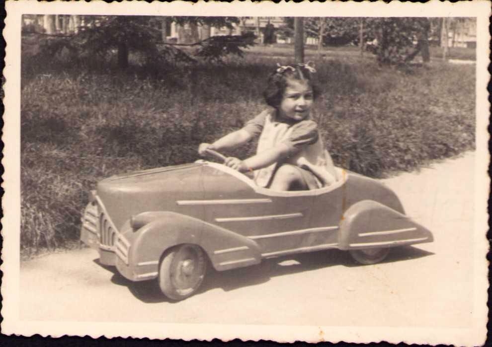 Oyuncak arabada kız çocuğu, 8x6 cm.