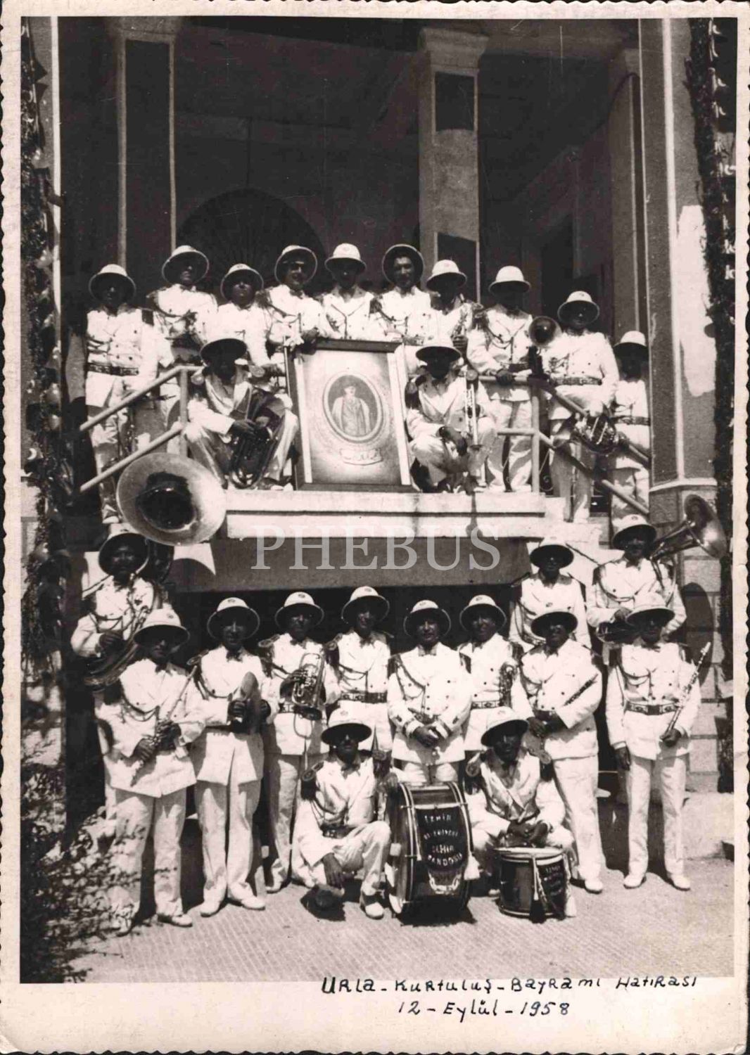 "İzmir Belediyesi Şehir Bandosu" Kurtuluş Bayramı münasebetiyle Urla´da, 12 Eylül 1958, 14x20 cm