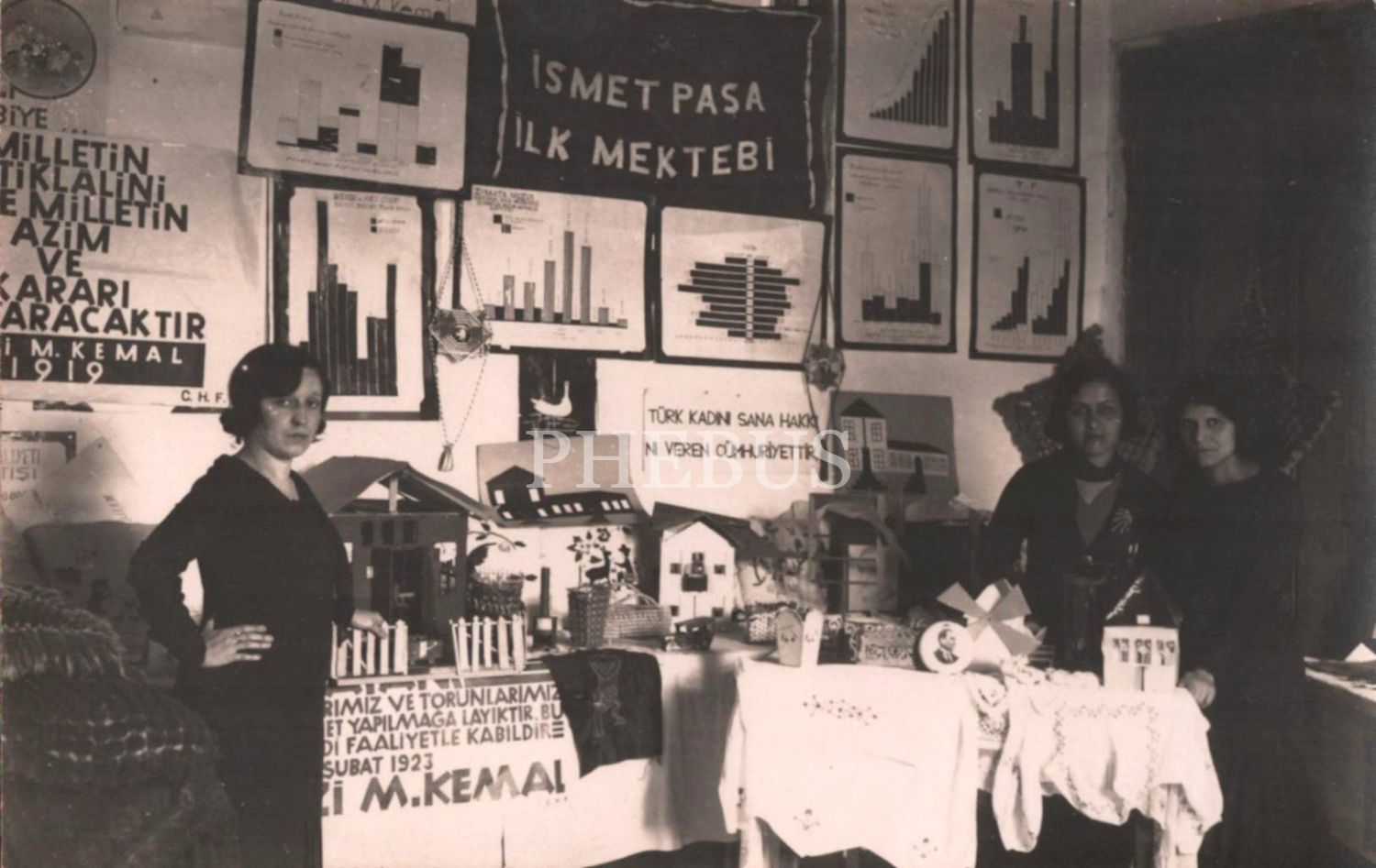 Cumhuriyetin 10. yıl dönümü sebebiyle İsmet Paşa İlk Mektebi´nde düzenlenen sergi alanından bir köşe, 14x9 cm