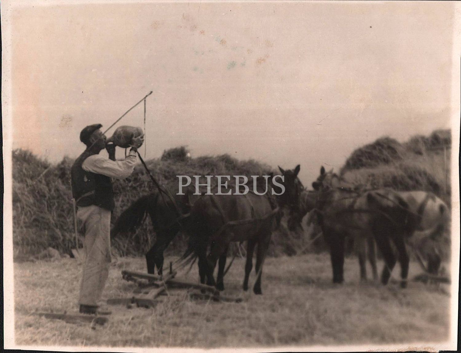 Su testisini kafasına dikerek hararetini gideren bir çiftçi, 15x12 cm