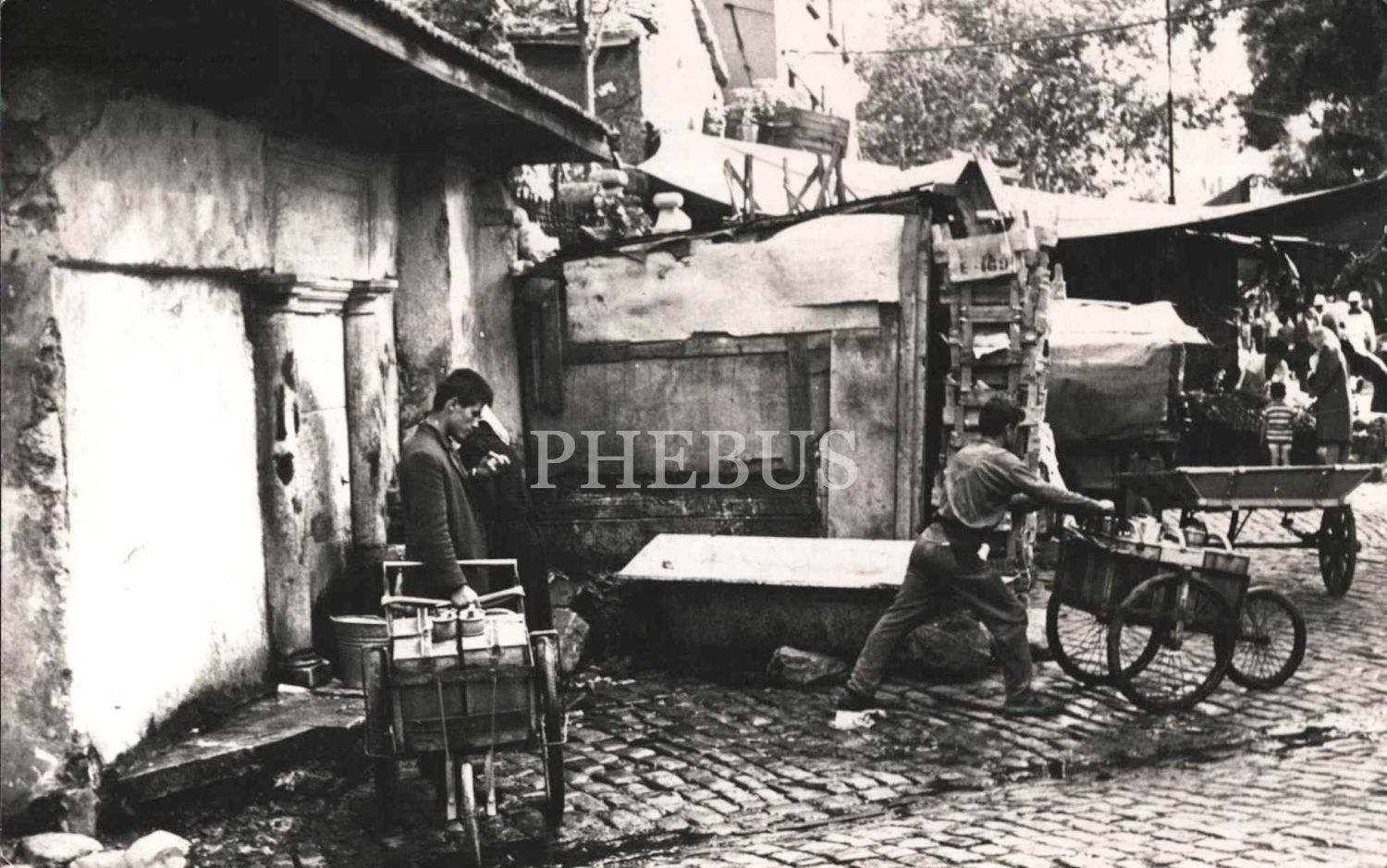 Eski bir mahallede seyyar satıcılar, 17x10 cm