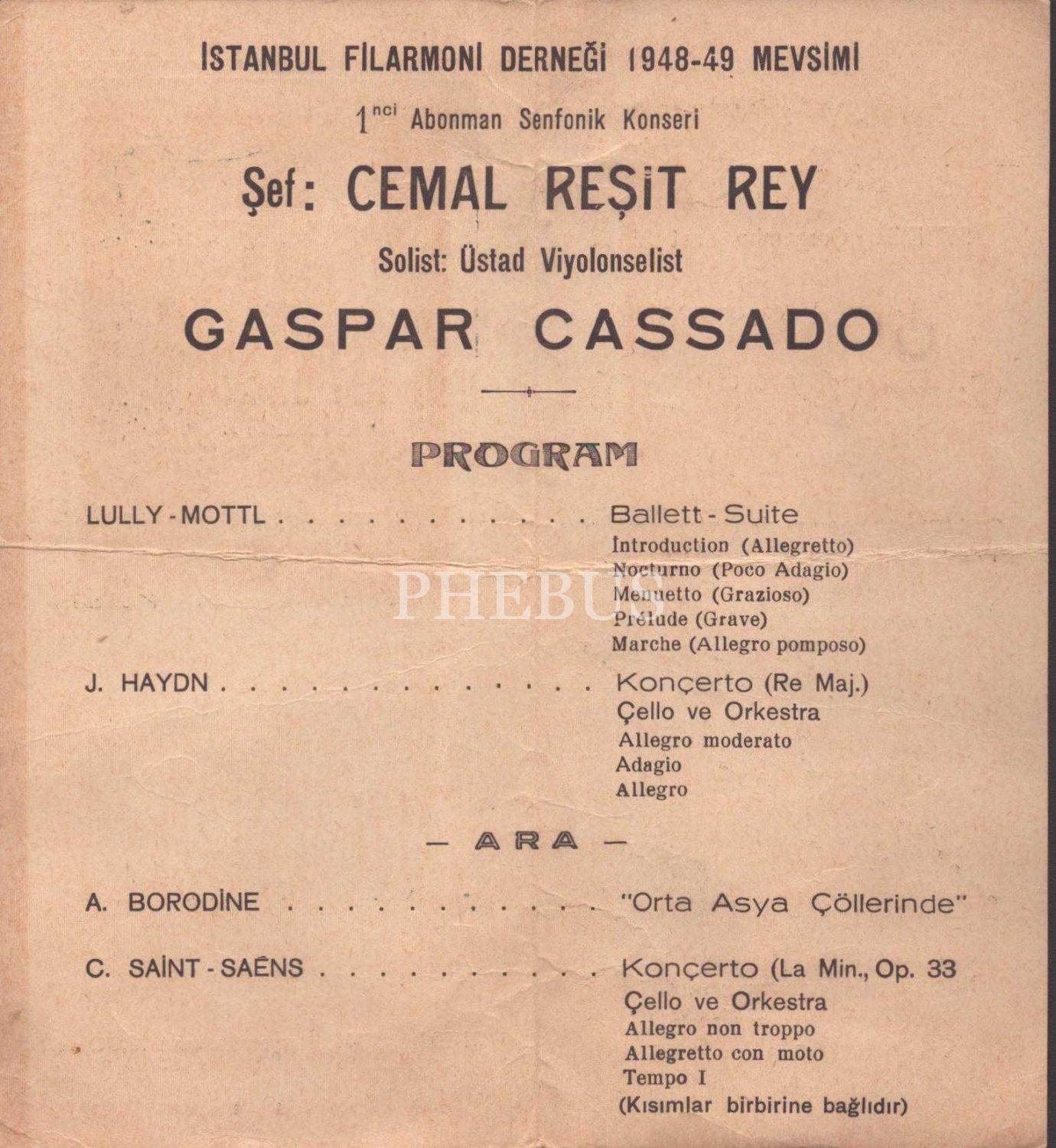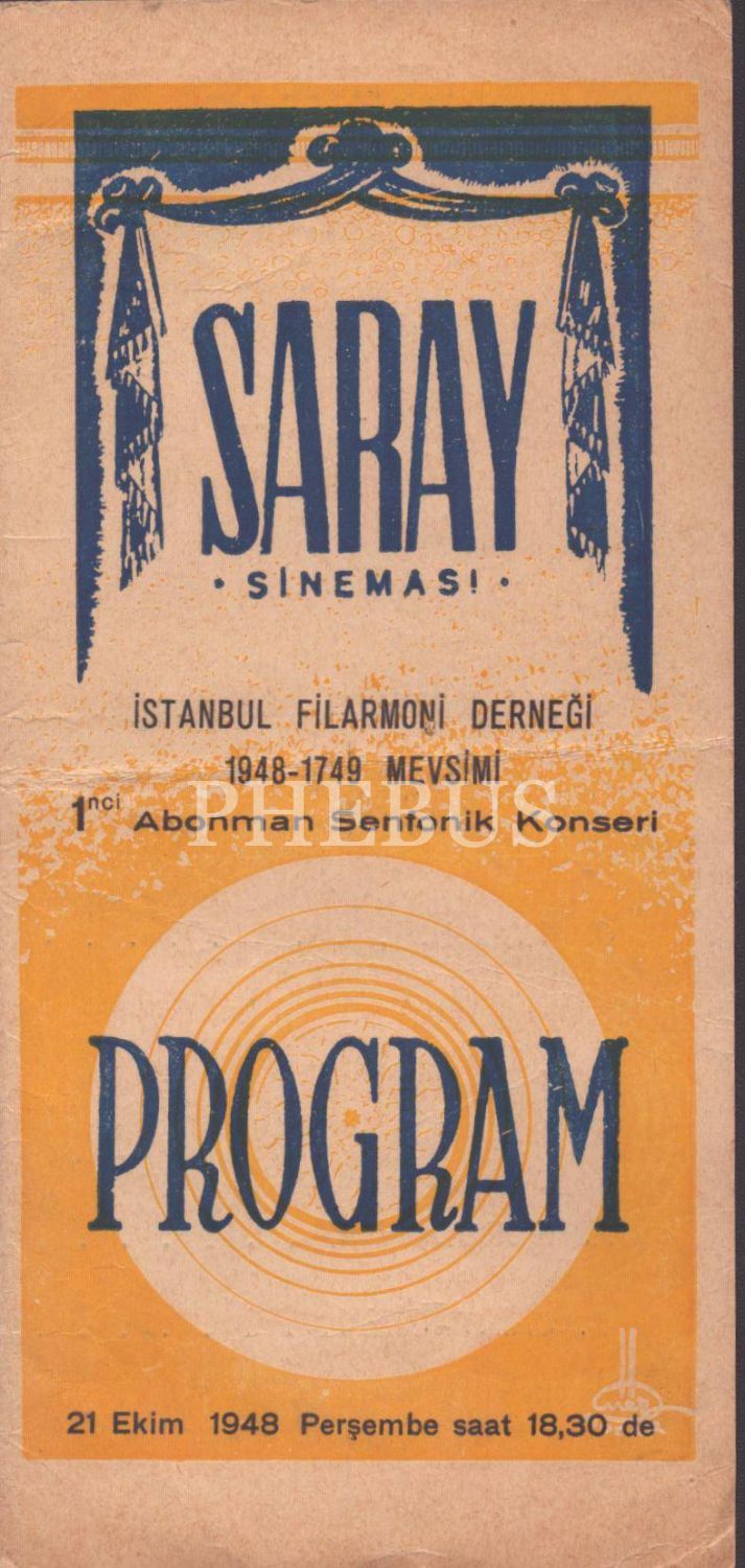 İstanbul Filarmoni Derneği 1. Abonman Senfonik Konseri Programı, 21 Ekim 1948, 10x21 cm