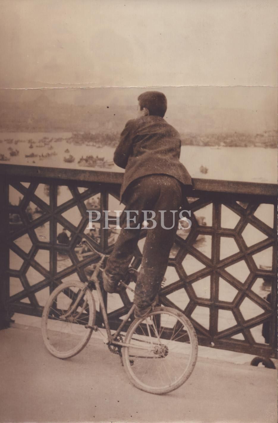 Bisiklet üzerinde Galata Köprüsü´nden İstanbul Boğazına bakış, Express Foto Muhabiri Aydın Döner damgalı, 12x18 cm