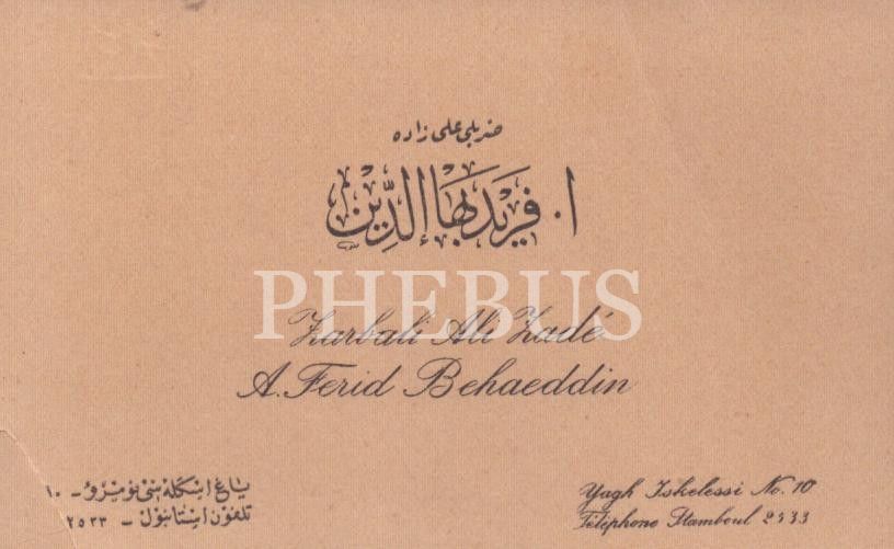 Zarbalı Alizâde A. Ferid Behaeddin´e ait kartvizit
