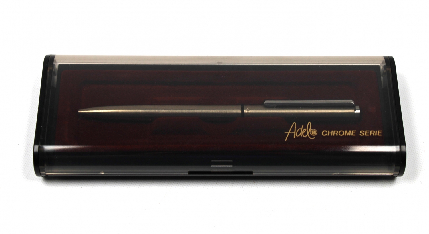 ADEL kutusunda krom tükenmez kalem, 17x6x2 cm.