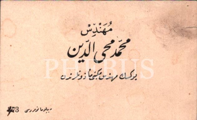 Yüksek Mühendis Mehmed Muhyiddin´e ait kartvizit