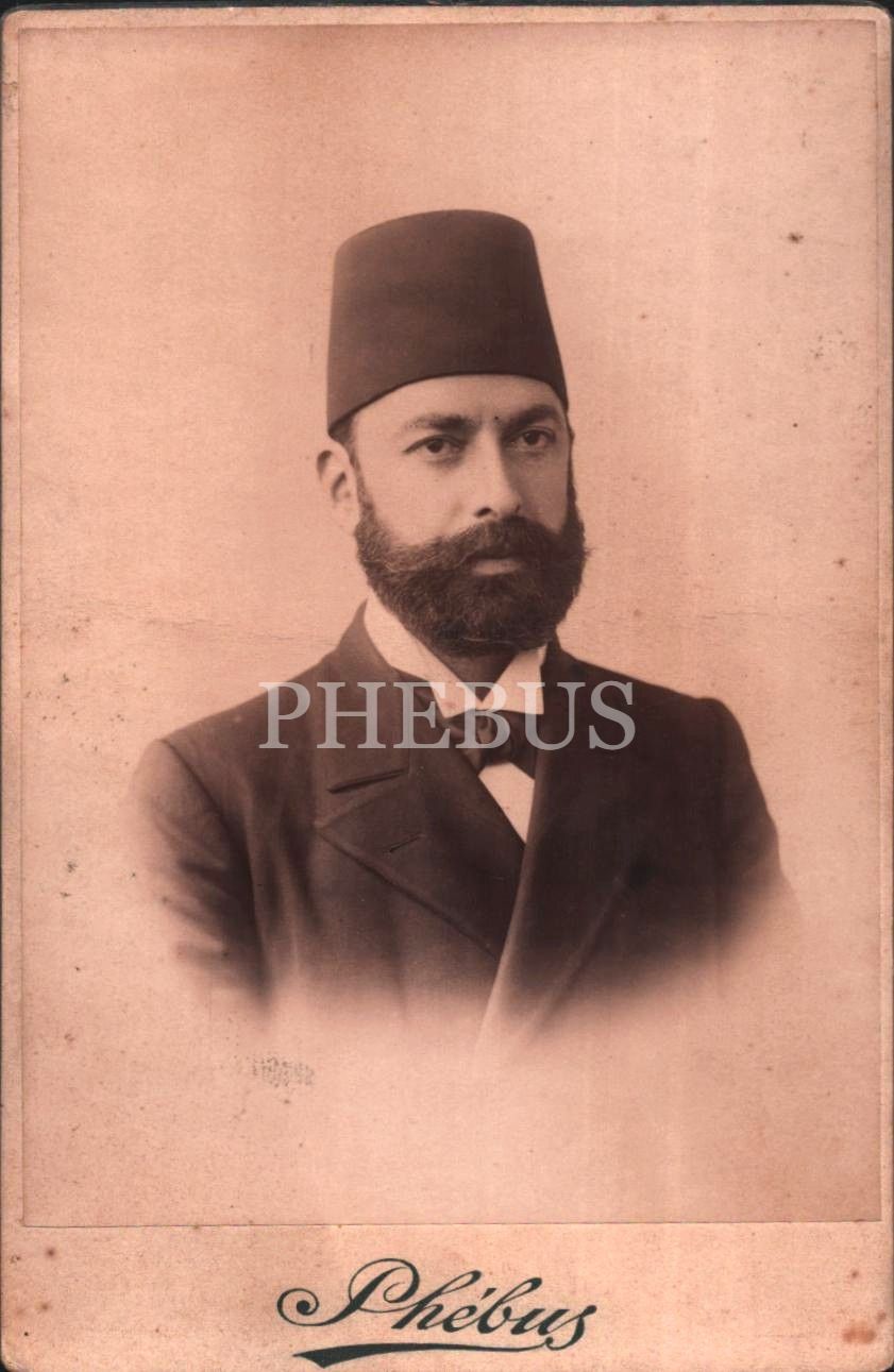 Şık giyimli beyefendinin kabin fotoğrafı, Phebus Fotoğrafhanesi- Constantinople, 11x16 cm
