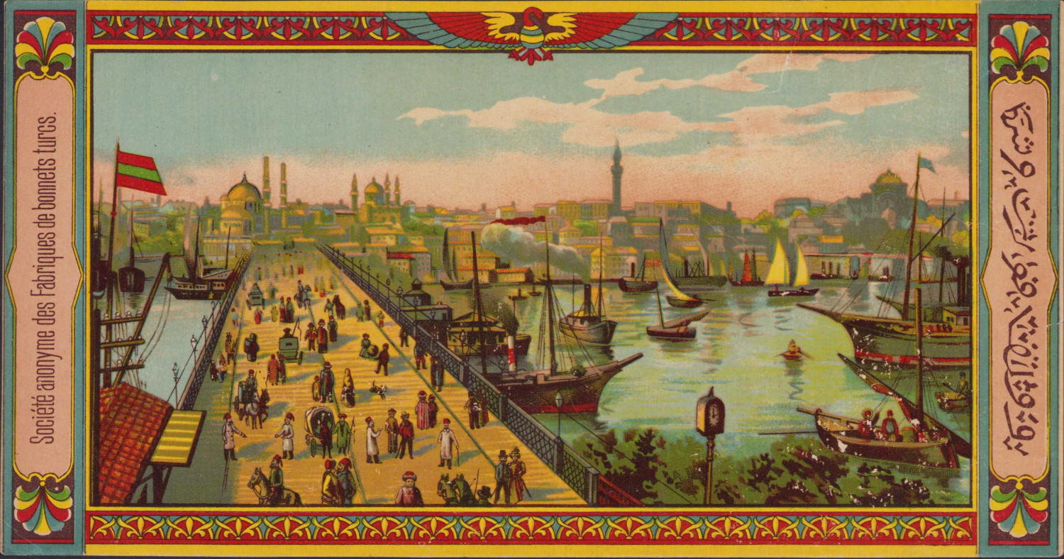 Osmanlı fes etiketi, Osmanlıca Fransızca 2 dilde, Galata Köprüsü görselli