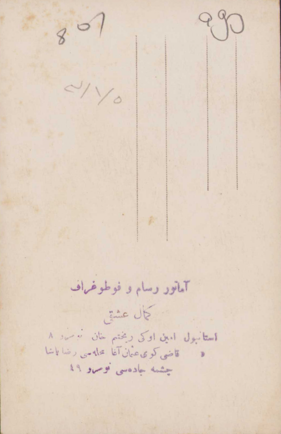Osmanlıca Amatör Ressam ve Fotoğraf Kemal Aşık damgalı fotokart, Kadıköy ve Eminönü şubeli