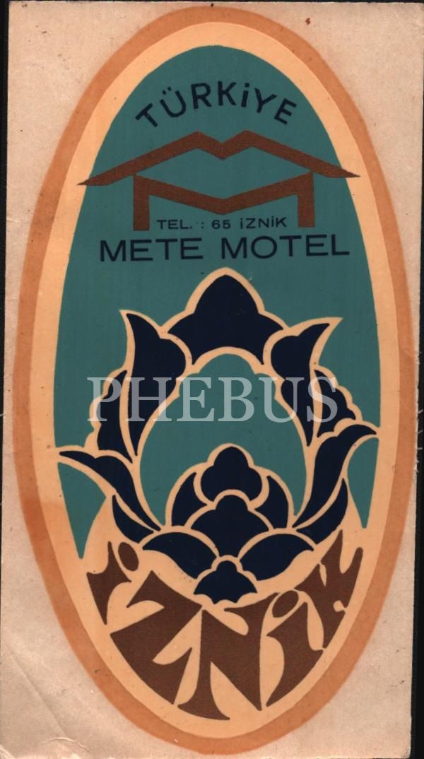 Türkiye Mete Motel İznik etiketi, 7x14 cm