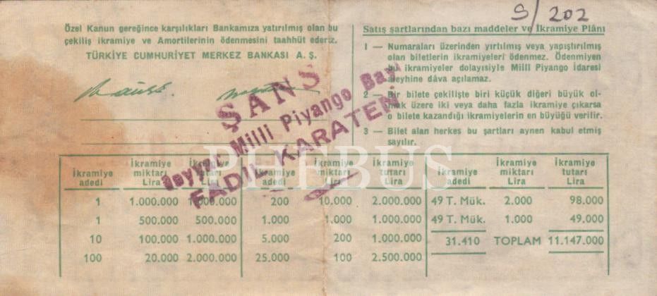 Milli Piyango 1/4 bilet, 23 Nisan 1972, 5x12 cm