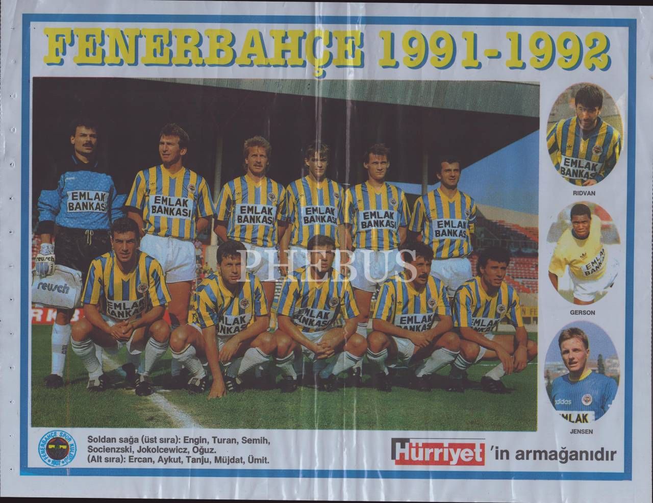 Hürriyet´in armağanı olarak Fenerbahçe SK 1991-1992 yılı posteri, 30x39 cm