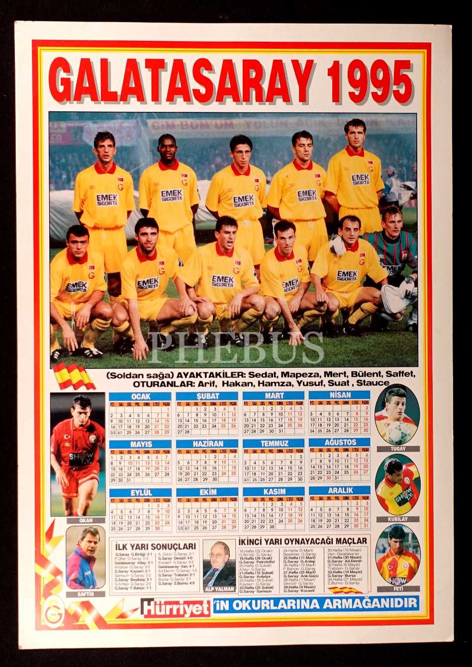 Hürriyet´in armağanı olarak Galatasaray SK oyuncuları görseliyle 1995 yılı takvimi, 35x50 cm