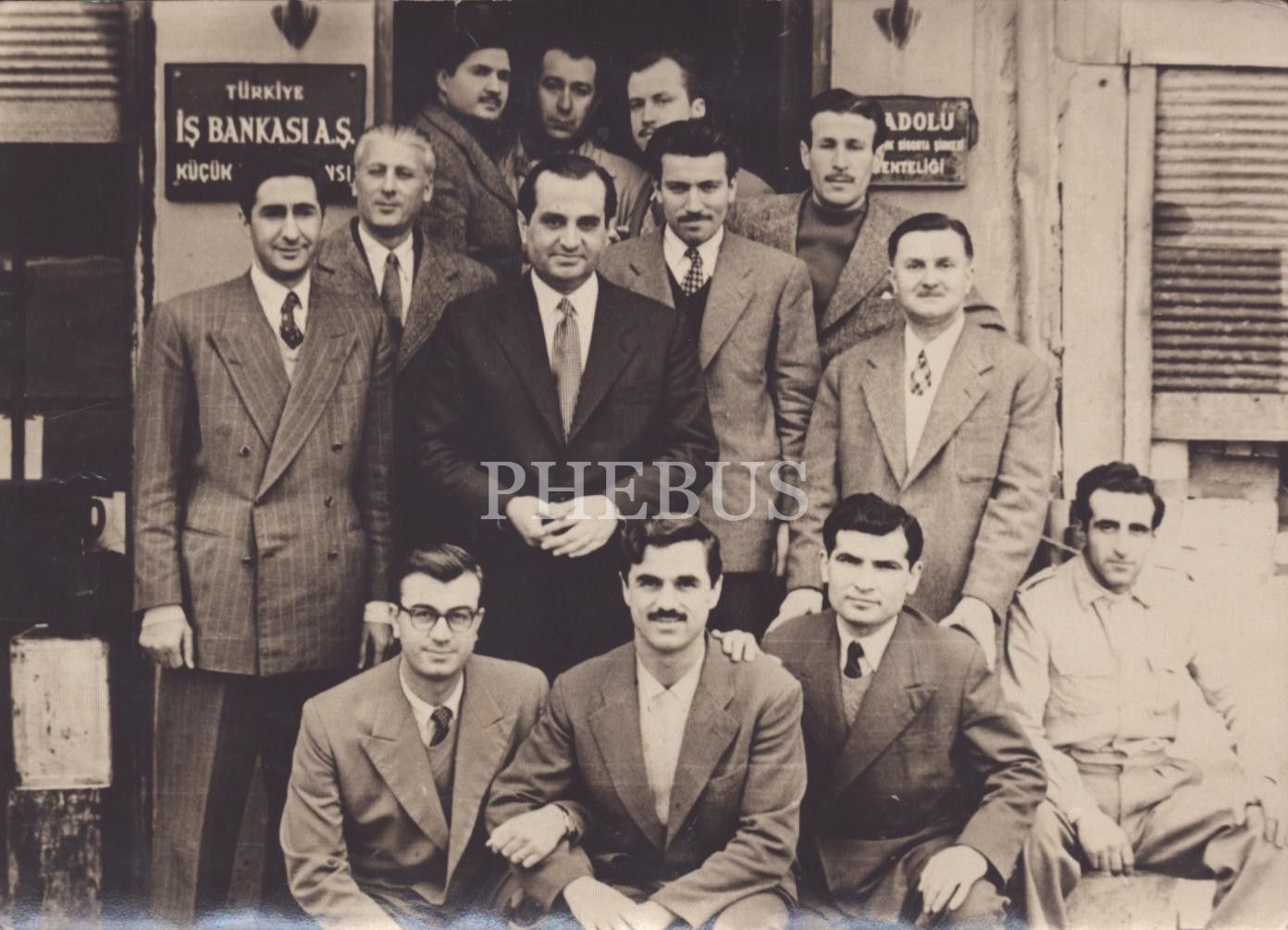 Türkiye İş Bankası ile Anadolu Sigorta Şirketi Acenteliği tabelasının önünde bir hatıra, 13x18 cm