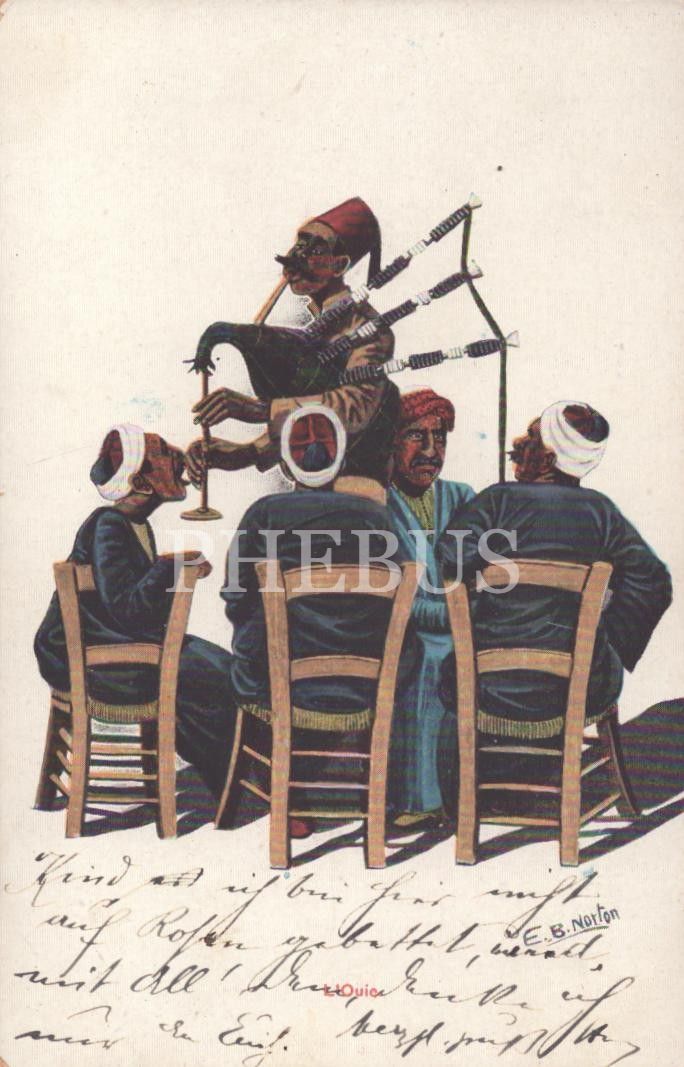 Mısırlı adamlar ve onların sohbetini bölen gaydacı, Mary Evans Grenville Collins Koleksiyonu, arkası Fransızca yazılı