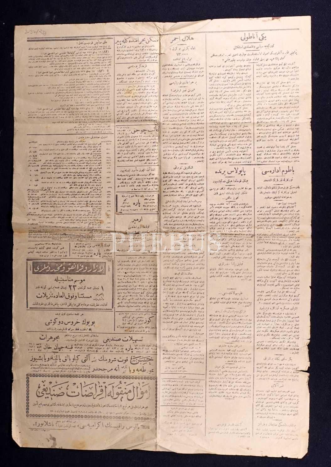AKŞAM gazetesinin 13 Nisan 1921 tarihli 919. sayısı, 41x61 cm