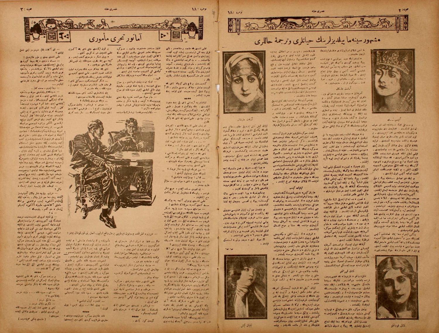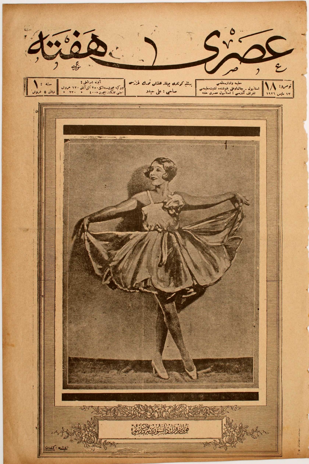 Osmanlıca Asri Hafta gazetesi, 1926 tarihli, dikkat çeken başlıklar: " Meşhur Sinema Yıldızlarının Hayatları ve Tercüme-i Halleri", "Lira Müsabakası"