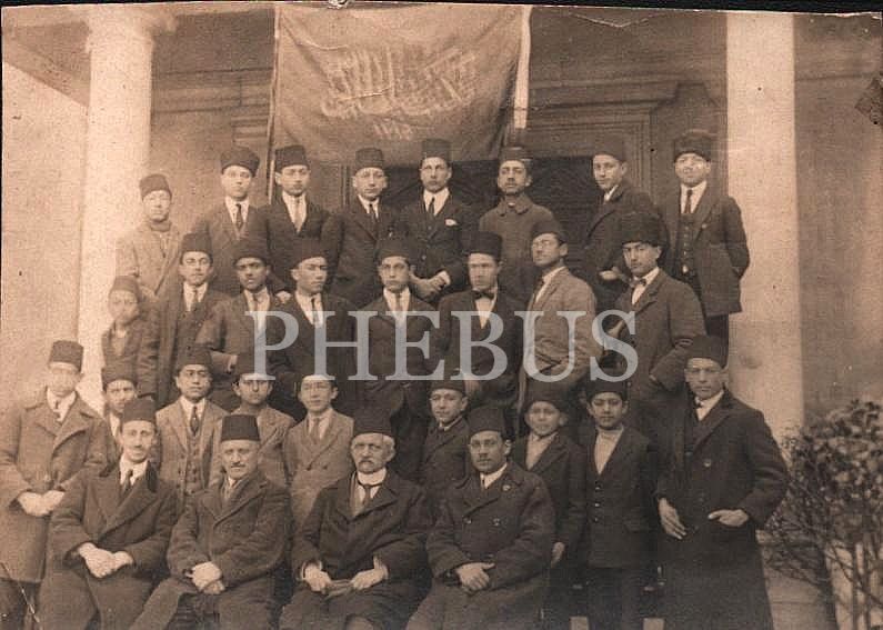 Mekteb-i Sultânî´nin giriş kapısında muallim ve talebelerin hatıra fotoğrafı, 7x10 cm