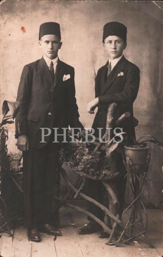 Fesli ve kalpaklı gençlerin hatıra fotoğrafı (2 adet)