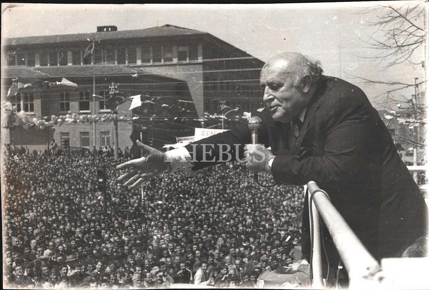 Türkiye Cumhuriyeti´nin 9. Cumhurbaşkanı Süleyman Demirel miting gösterisinde halka seslenirken, 14x21 cm