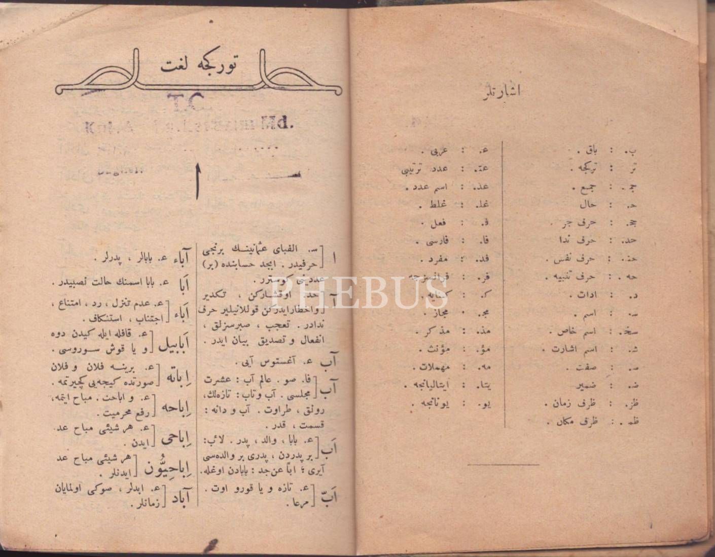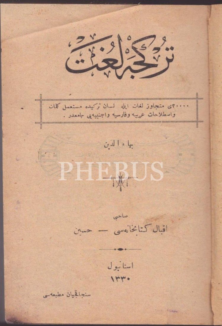 TÜRKÇE LÜGAT, Bahaeddin, Sancakciyan Matbaası, İstanbul 1330, 1196 s., 11x14 cm, cilt kapağı kırık haliyle