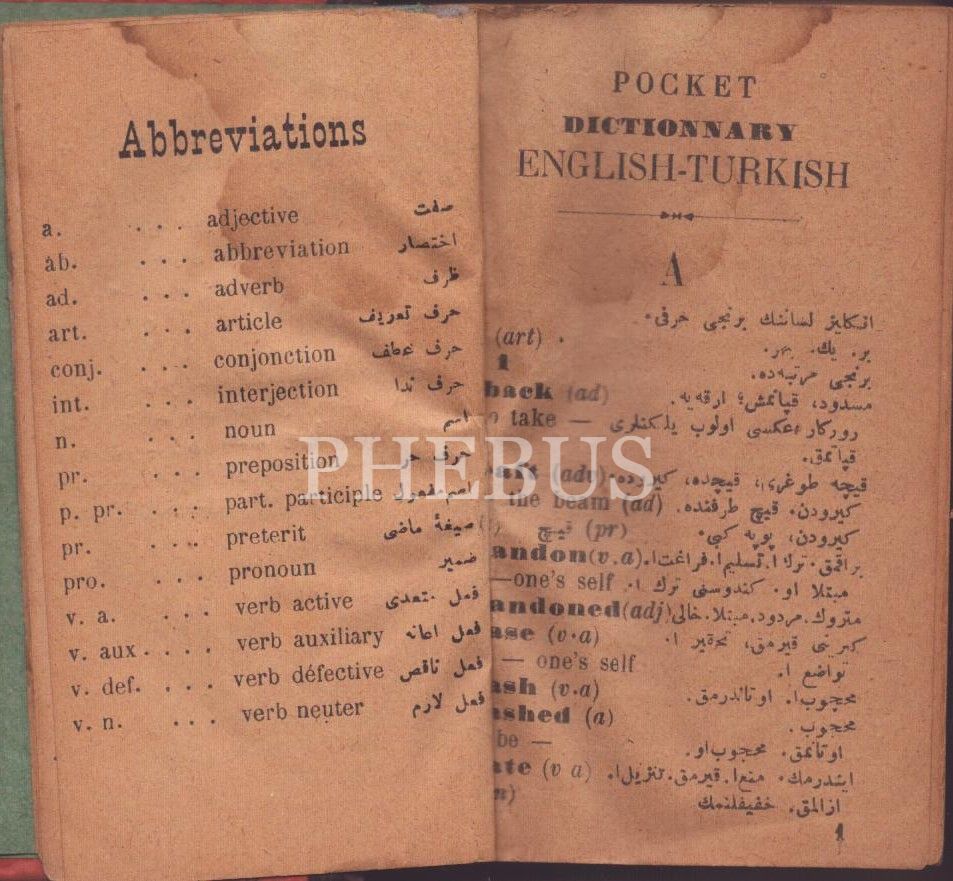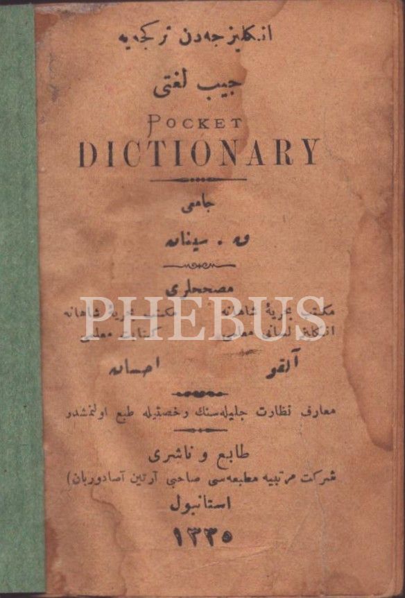 İNGİLİZCEDEN TÜRKÇEYE CEB LÜGATİ, derl. K. Sinan, Şirket-i Mürettibiye Matbaası, İstanbul 1335, 815 s., 8x12 cm